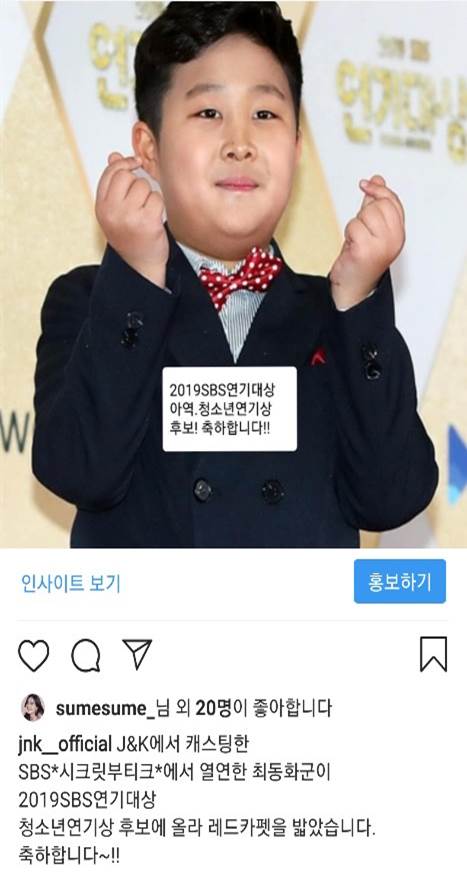 최동화군이 2019년 SBS연기대상 청소연연기상 후보에 올라 레드카펫을 밟았습니다 ~!!